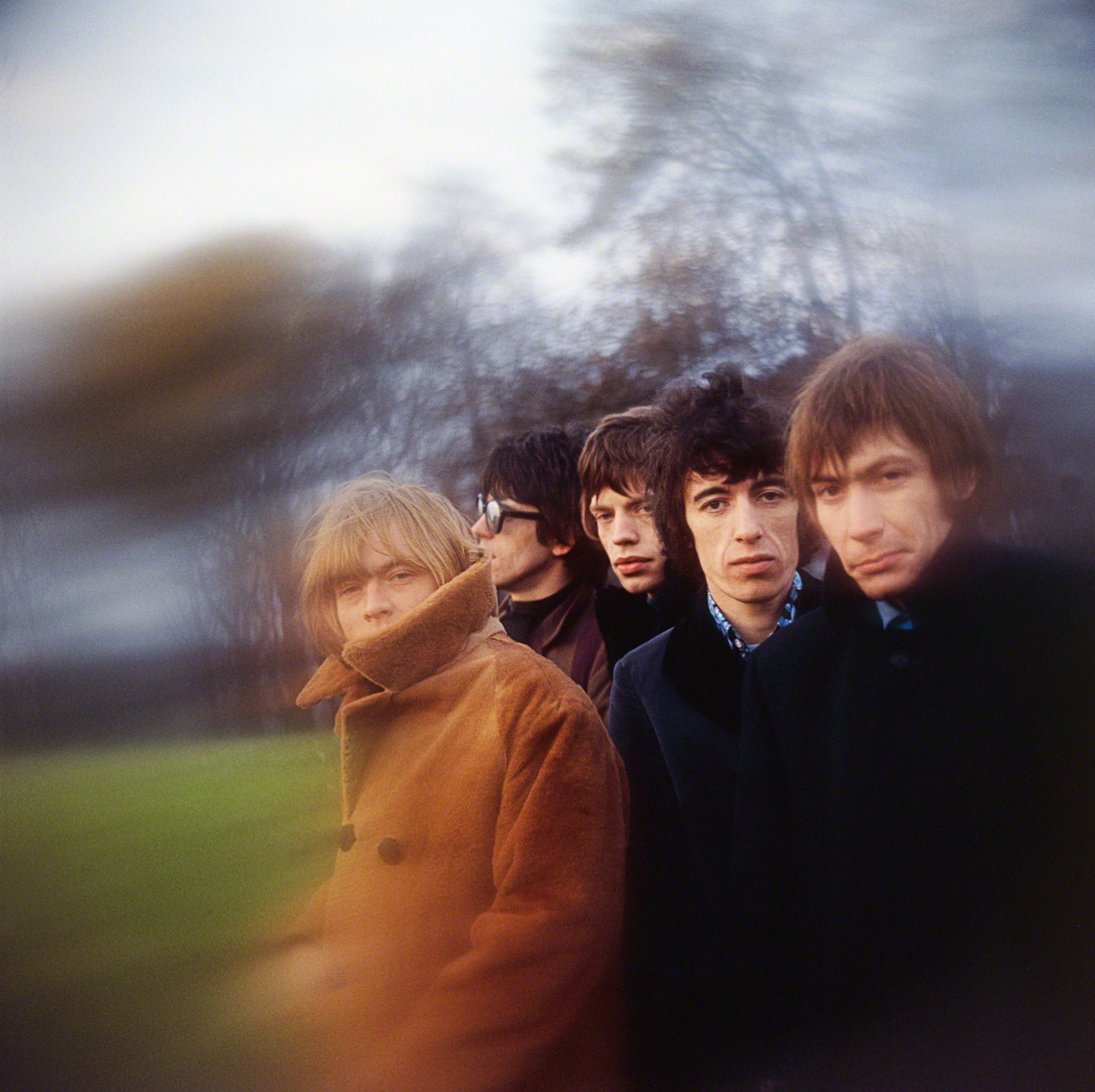 In November of 1966, after an all night recording session at Olympic Studios, Mankowitz thought they had the perfect look for the album cover and invited them for a photo shoot at sunrise. They squeezed into Andrew’s Rolls Royce and headed for Primrose Hill in North London, in the Regent’s Park. To create a dreamy atmosphere, he spreaded Vaseline over the edges of the filter that covered the lens of his Hasselblad, giving a psychedelic touch to the image, with the edges blurred, as if the group was dissolving.